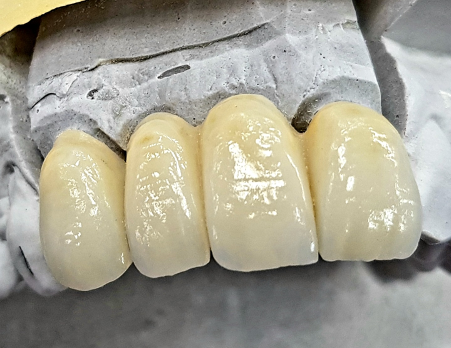 We consider it is not strong enough for bridgework without the support of zirconium frame.